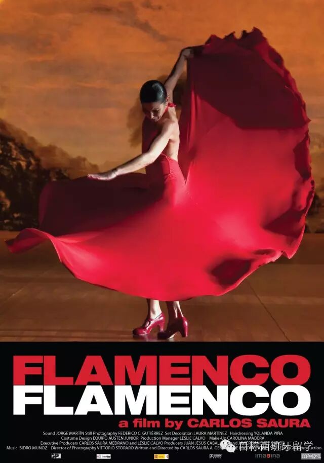 弗朗明哥礼服经过时间历史的洗礼,现在不遵循既定的正式规则,不断更新,不同的设计与颜色针对不同年龄的表演者和曲目,或短或长的裙摆,千变万化的颜色组合,形式各异的流苏披肩… 随着时间的推移,如今在西班牙安达卢西亚地区任何的庆祝活动上,都可以看见将鲜花别在发髻上,佩戴着吉普赛风格或波西米亚风格的夸张耳环,身着弗朗明哥礼服的人们。 电影 对想了解更多的朋友,推荐观赏由卡洛斯·绍拉导演在2010年执导的“Flamenco, Flamenco”纪录片,电影围绕着优美的弗朗明哥歌曲、舞蹈和音乐进行,堪称西班牙音乐电影史上的里程碑,使全世界观众得以欣赏到西班牙这独一无二的艺术文化。