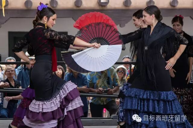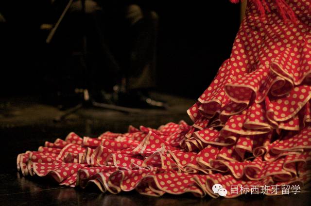 服装 谈到国粹舞蹈,就不得不说起它令人过目不忘的表演服装了,弗朗明哥礼服随着时代变迁出现了翻天覆地的变化。上世纪60年代,随着西班牙经济繁荣的推动,流行趋势与人们的时尚观念也随之发生改变,礼服的尺寸缩短到半只脚或膝盖位置处;而自70年代起,表演服装回到直至小腿到脚踝的传统长度。但无论长度如何变化,作为当今世界最富感染力的流行舞种,弗朗明哥始终以它极具特色的张扬裙摆,和浓艳的色彩,向世人传达着它热烈、自由的舞蹈灵魂。